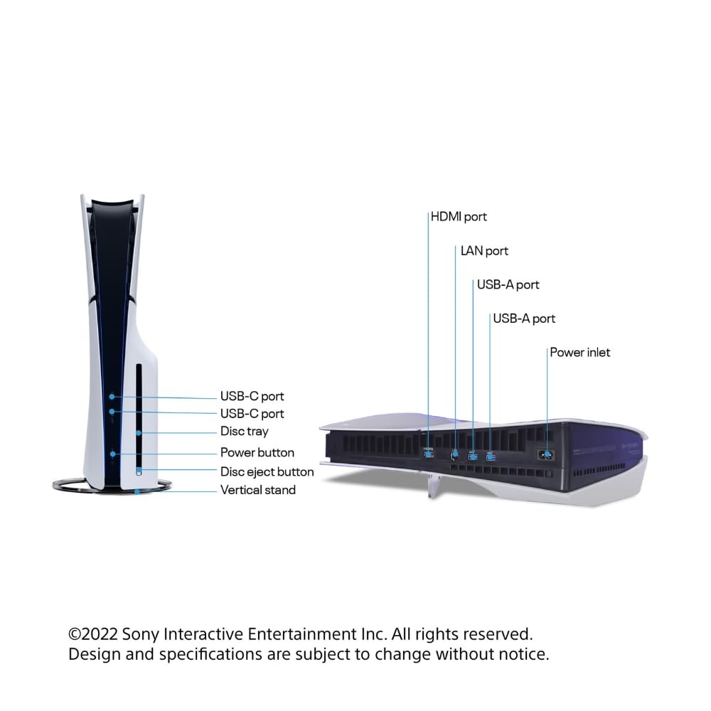 • Slim Design: With PS5, players get powerful gaming technology packed inside a sleek and compact console design. 1TB of Storage: Keep your favorite games ready and waiting for you to jump in and play with 1TB of SSD storage built in. Ultra-High Speed SSD: Maximize your play sessions with near instant load times for installed PS5 games.